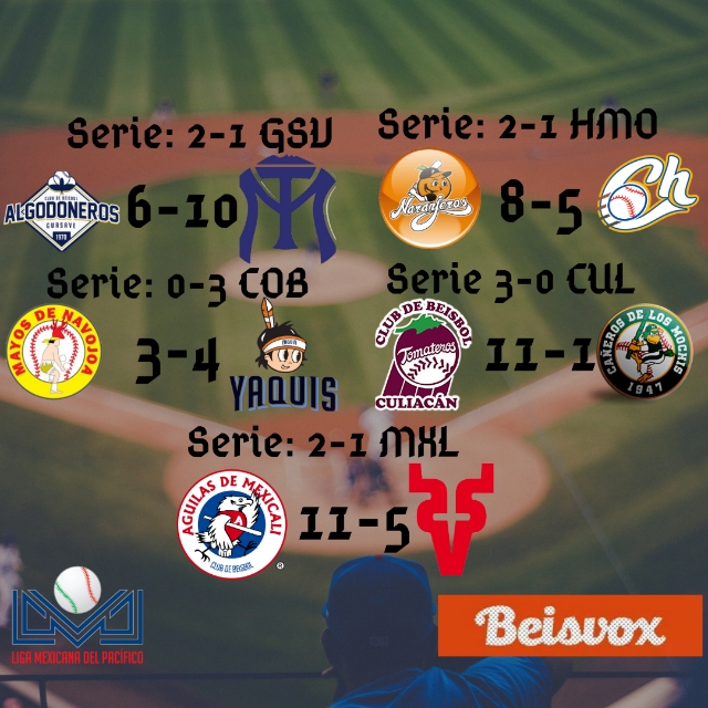 Culminaron nuevas series en la LMP y cada vez comienza a generarse más diferencia entre los primeros lugares y el resto de los equipos. Yaquis y Tomateros barrieron sus respectivas series para tener una semana positiva. Naranjeros, Águilas y Algodoneros sacaron las series fuera de casa.