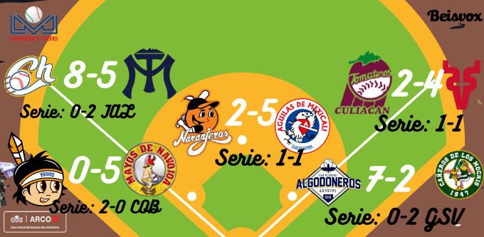 Terminaron las series inaugurales en la Liga Mexicana del Pacífico. Algodoneros de Guasave y Yaquis de Ciudad Obregón terminaron barriendo a Cañeros y Mayos respectivamente. Mientras que Águilas de Mexicali y Naranjeros de Hermosillo dividieron honores.